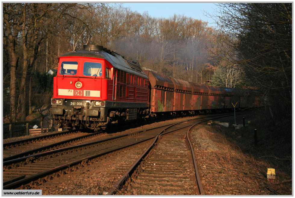 Im Okt./Nov. 2008 war für einige Zeit der "Latzrusse" 241 338 vor den Chemnitzer Kohlependeln zu beobachten. Hier befördert er am Mittag des 02.11.08 den Leerzug CS61553 durch Chemnitz-Schönau.