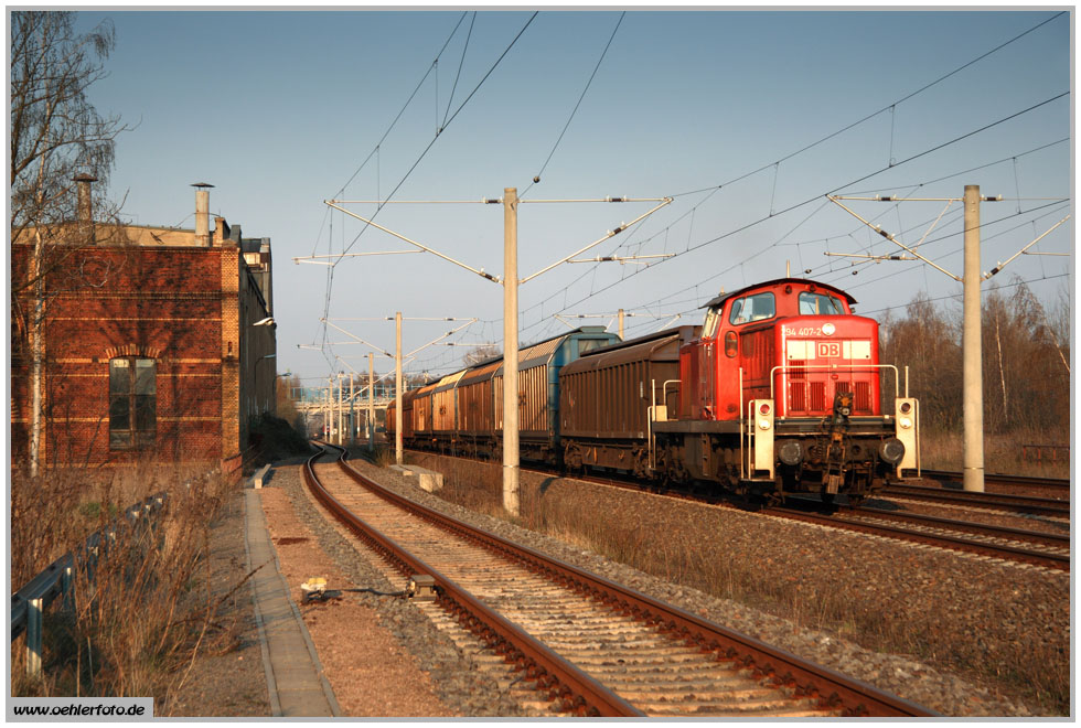 Für die allabendlichen Übergaben nach Zwickau ist es schon eine "lange Leine", mit welcher 294 407 am 17.04.08 aus dem Südbahnhof Chemnitz ausfährt.