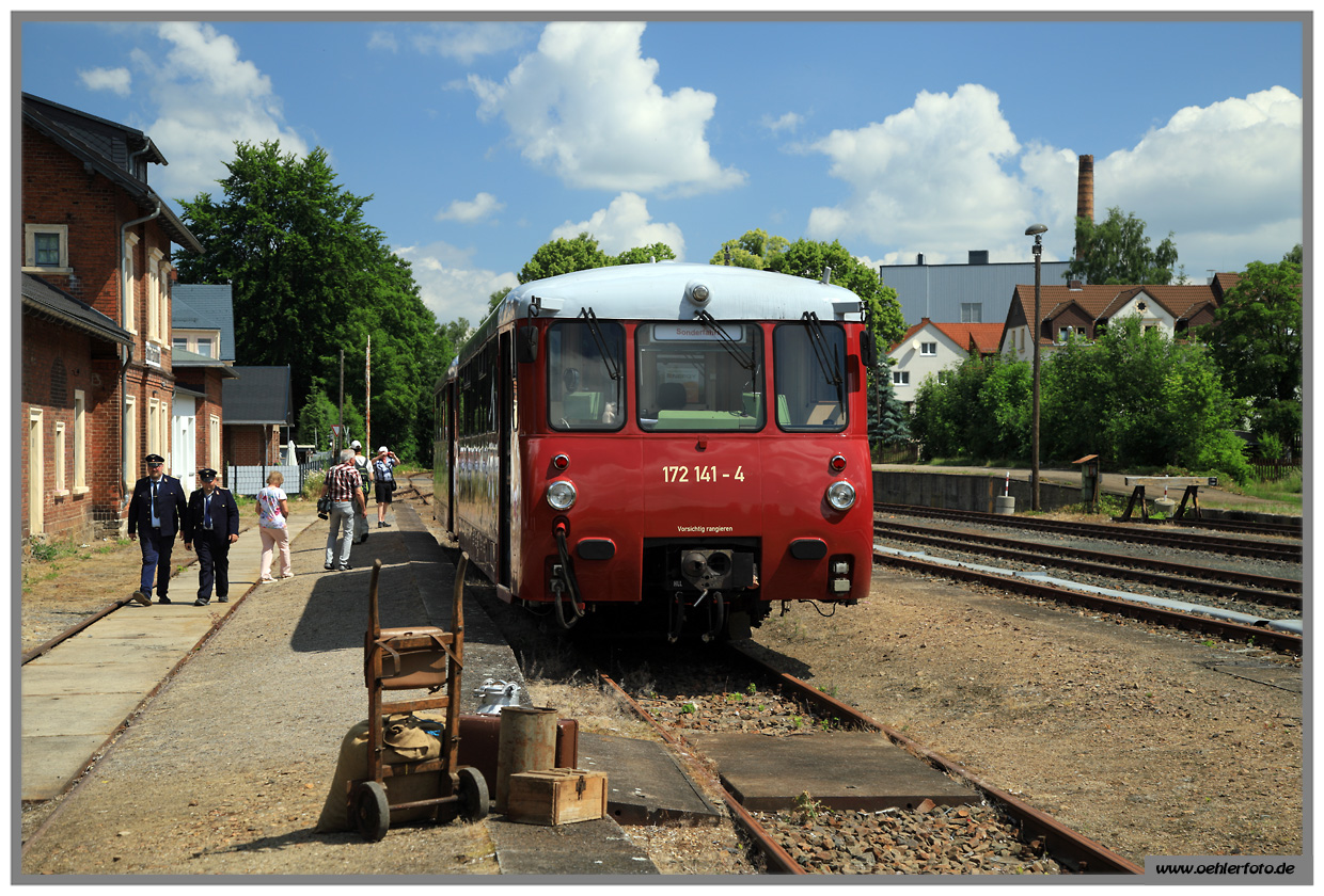 172 132 fuhr im Rahmen einer Sonderfahrt durch das Erzgebirge am Vormittag des 19.07.2014 aus dem Markersbacher Bahnhof aus.
